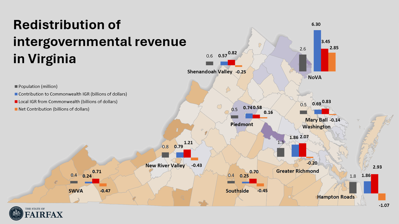 Making invisible government funding flows visible in Virginia: Why the analysis of intergovernmental finance matters Has the United States entered an era of authoritarian federalism? Is it better to give than receive? Exploring the distributional dimension of Virginia’s budget A Fairfax Economist’s Wish List for 2026 Do wealthy people in Virginia pay their fair share in taxes? Is Virginia really the biggest “Taker State” in the United States?In many ways, Fairfax County is more like a state than a local government. If Fairfax County were a state, its state population would be larger than the District of Columbia and 8 other states in the Union, and its economy would be larger than 17 states. As such, this website considers the state of Fairfax by considering Fairfax as a State.
