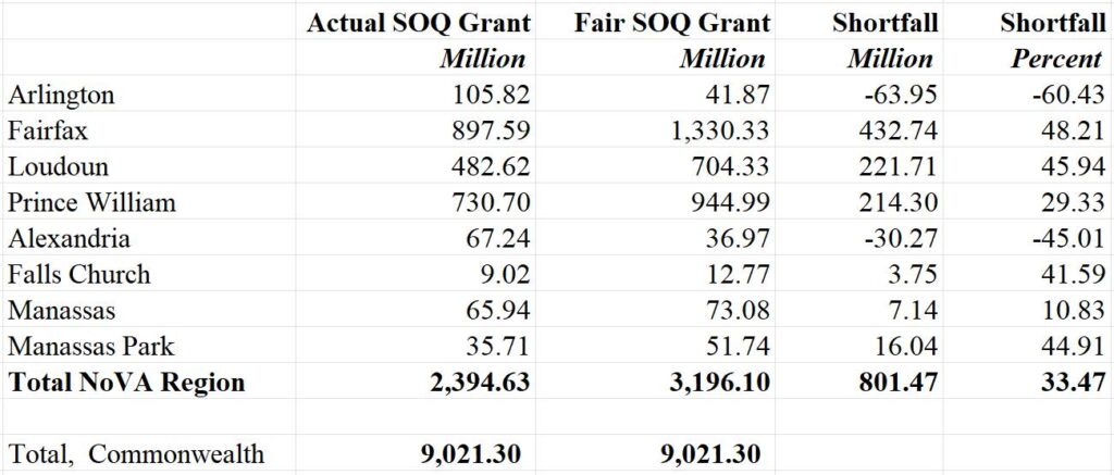 - Most localities benefit from the current underestimation of SOQ costs, because it gives them more grant funding than they deserve, and keeps their official local SOQ obligation artificially low.