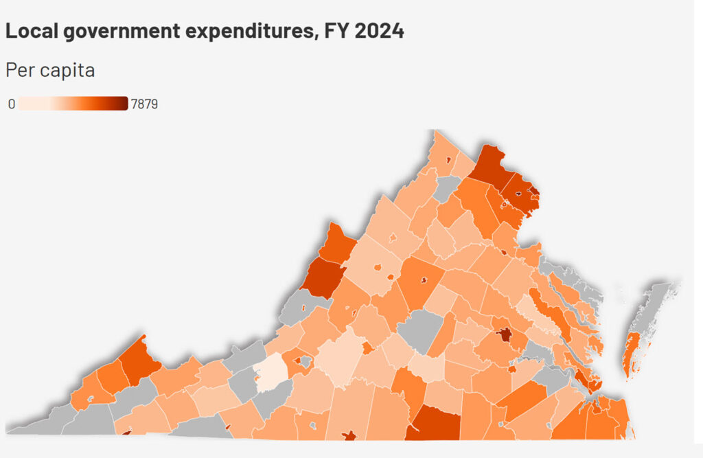 According to the Virginia Auditor of Public Accounts, local governments (counties and cities) in Virginia spent a total of 39,829,847,190